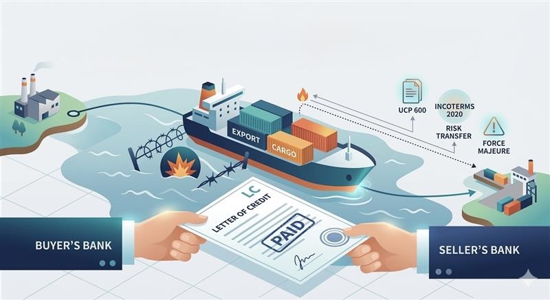 - Explicit War Risk Insurance: Standard cargo insurance (ICC A or C) typically excludes war. Parties should explicitly require "Institute War Clauses" in the L/C.